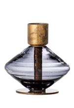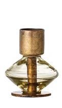 Candle Holder Taper Antique Brass & Glass Blue or Amber Medium Sold Individually