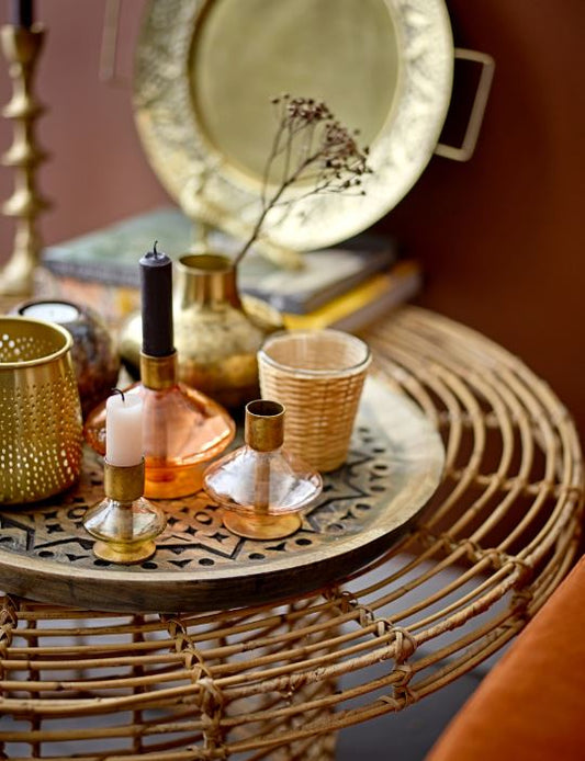 Candle Holder Taper Antique Brass & Glass Orange Large