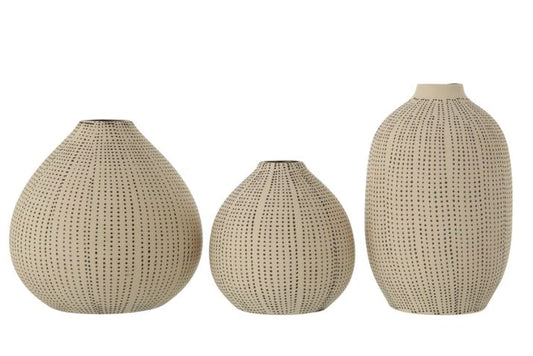 Vase Stoneware Textured Off White & Black Dots 5.5"h