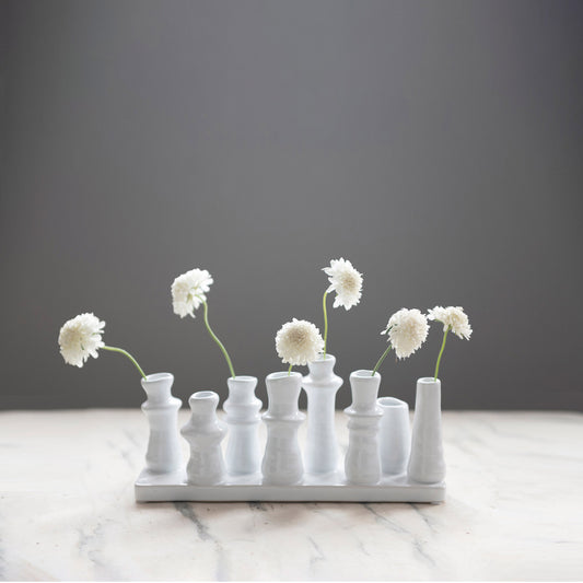 Vase Stoneware Multi Vase With 8 Sections White 10.5" Long x 4.5" High