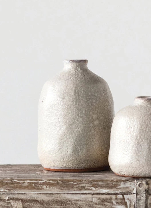 Vase Terracotta Sculptural Sand Finish Cream 6.75" High