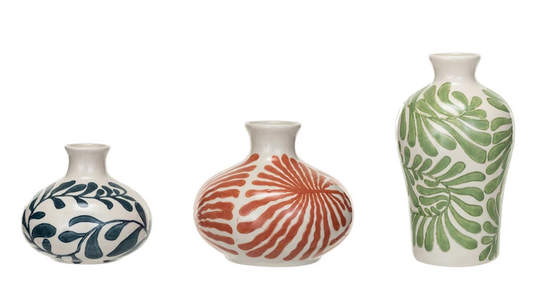 Vase Stoneware Hand-Stamped 3 Styles Blue & White Large 5.75"h