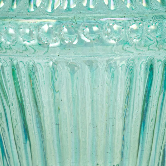 Vase Debossed Glass Teal Medium 5" High