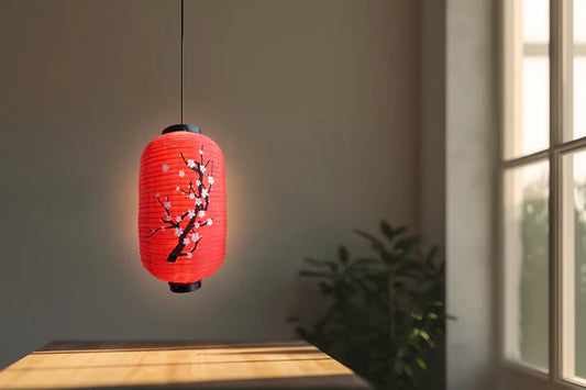 Japanese Oblong Lantern Nylon Plum Tree Red 16.5" Long