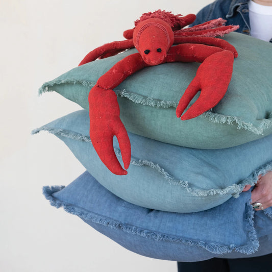 Pillow Stonewashed Linen With Fringe Blues (3 Colors, Sold Individually) 20" Square