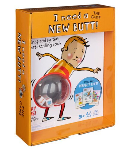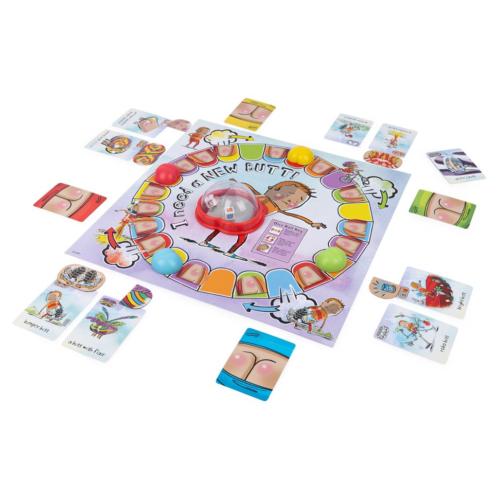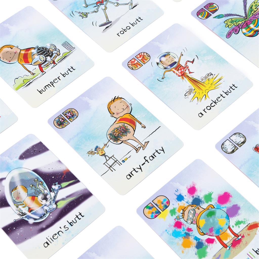 Board game cards include cheeky new butts such as rocket butt, robo butt, and paintball butt.