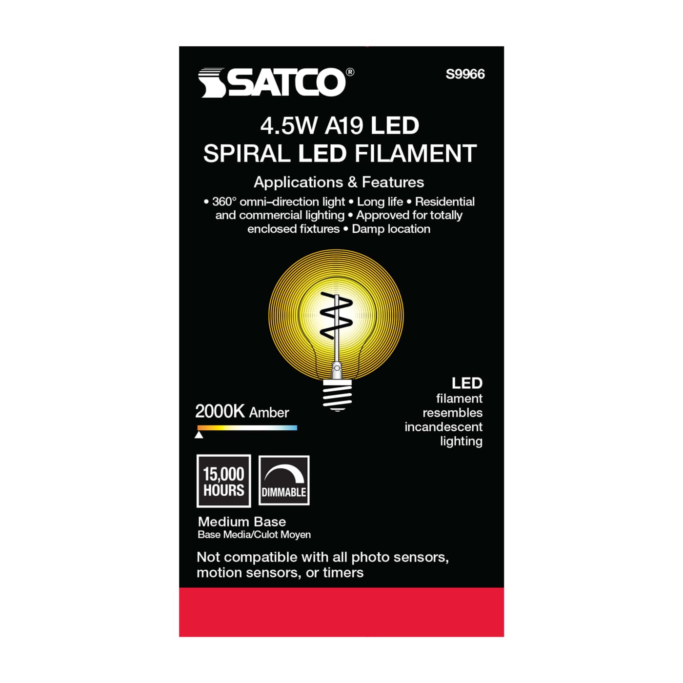 LED Light Bulb Vintage Spiral, Edison Style, Medium base, Amber, Dimmable, 4W, A19, 240 Lumens, 2200 CCT
