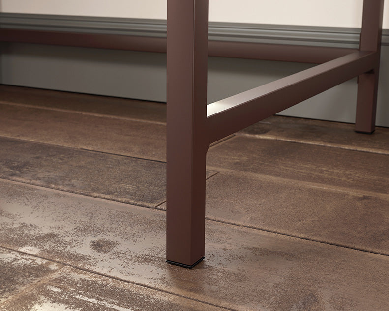 This metal and wood desk is finished on all sides for versatile placement, ensuring that it will look polished from every angle.
