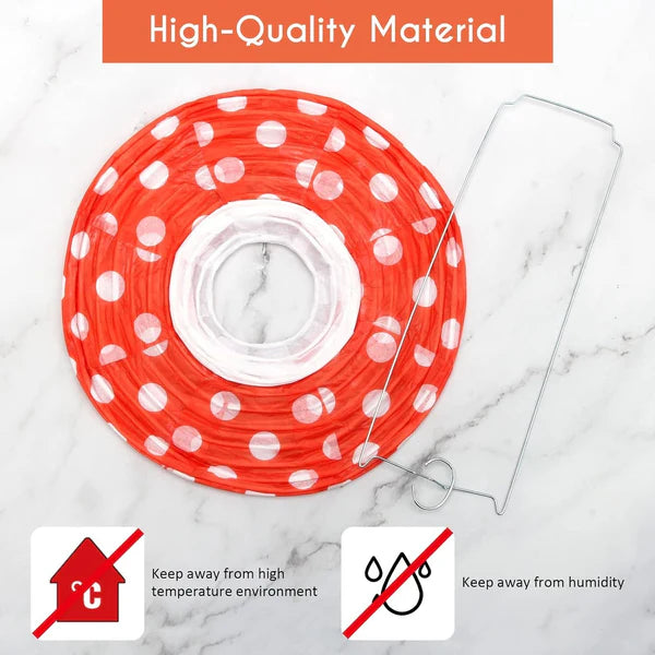 Paper Lantern Mushroom Shaped Red & White Polka Dots 8"
