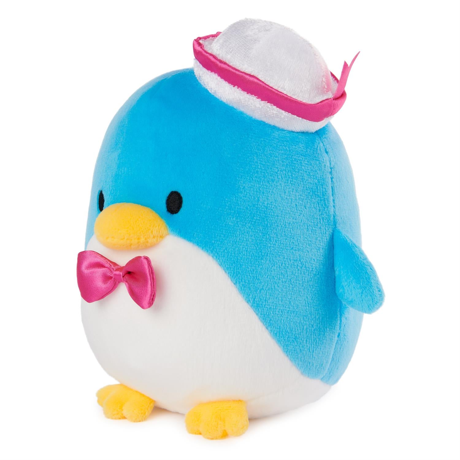 This Tuxedosam plush toy features soft, bright blue plush, adorable little flippers, a yellow beak, yellow feet, and embroidered eyes.