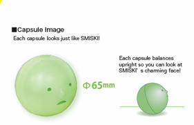 Not only the mini-sized Smiskis, but even the capsules are made of a phosphorescent material that absorbs light and emits light when it gets dark, so they glow softly in the dark.